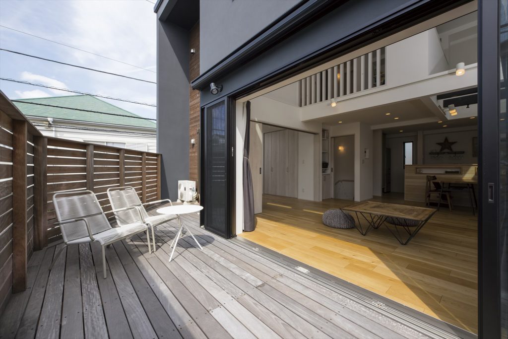 できるだけ仕切りを作らず、吹き抜けやスケルトン階段を採用したり、LDKとウッドデッキを一続きにしたりとさまざまな工夫が可能です。