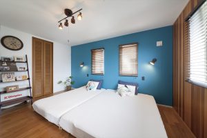 青と白という組み合わせは爽やかでありながらどちらも主張しすぎることなく調和してくれるので、家全体を統一感のある空間にしてくれます。